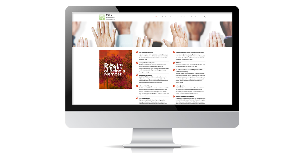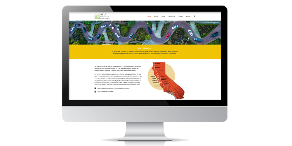 The Northern California Chapter of the American Society of Landscape Architects had an outdated website that did not reflect the innovative design of their chapter members. They wanted a refresh that allowed members to easily access the information they needed while engaging them to explore other parts of the website. View the website here.