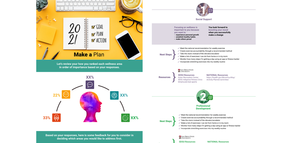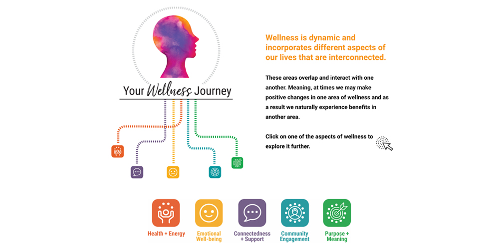eCHECKUP TO GO provides online intervention and prevention tools for colleges and businesses. These tools include a variety of programs for alcohol, cannabis, nicotine, sexual violence prevention, and now, wellness. We were excited to design the look of their new program so that users would be engaged and motivated to interact with the program and come back to track their progress. Accessibility is a big consideration when creating programs for colleges, so we had to keep that in mind when selecting colors as well as how the design would look on a mobile phone and tablet. Incorporating fun, bright, images and interactive elements was essential to the audience. We created custom graphics that helped to explain the wellness journey the user was about to take. After receiving focus group feedback, we finalized the design and it is currently being programmed/developed for use across the globe.