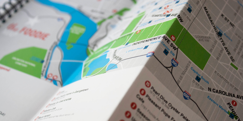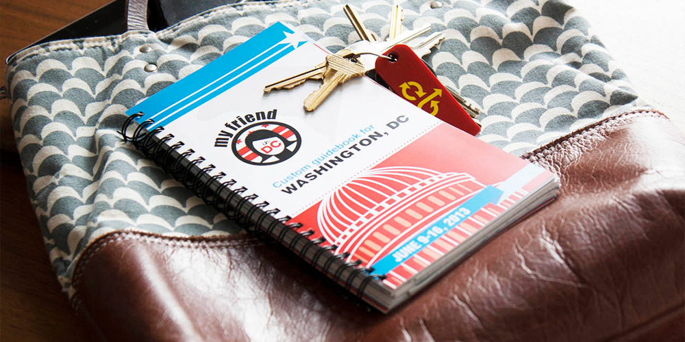 My Friend in DC is a customized guidebook for Washington, DC visitors. Branded with a logo of a female guide (owner, Melanie Lytle), she transforms into each topic of interest by adding a fork and knife for The Foodie and a bird in a tree for The Tree Hugger. My Friend in DC is a tailored guidebook based on your unique interests which aims to improve your trip by handing you insider information. Filled with maps, illustrations, patterns and cute icons, this guidebook provided an interesting tour of DC unlike no other.