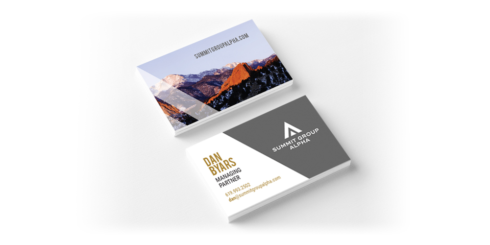 Summit Group Alpha is a new company that provides leadership training based on the managing partners’ military expertise. They needed a brand that showed strength, professionalism, while also having a military feel. All the managing partners also had a strong connection to Colorado’s Pike’s Peak, which was included on the backside of their business cards.